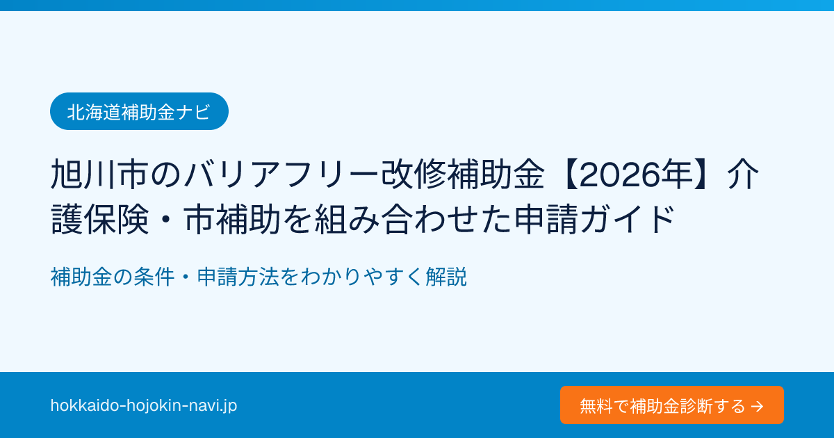本記事では、旭川市のバリアフリー改修補助金の全体像を整理し、介護保険との組み合わせ方、対象工事と費用目安、ケアマネジャーとの連携手順まで、申請に必要な情報をステップごとに解説します。2026年度の最新情報をもとに執筆していますが、制度の詳細は必ず旭川市や担当窓口に最新情報をご確認ください。