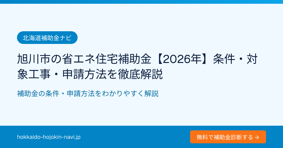 旭川市の補助金情報は年度ごとに更新されます。最新情報は必ず旭川市公式ホームページまたは市建築指導課(☎0166-25-5545)でご確認ください。