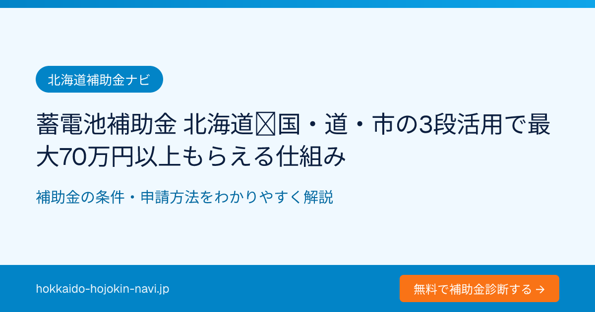 蓄電池補助金 北海道|国・道・市の3段活用で最大70万円以上もらえる仕組み