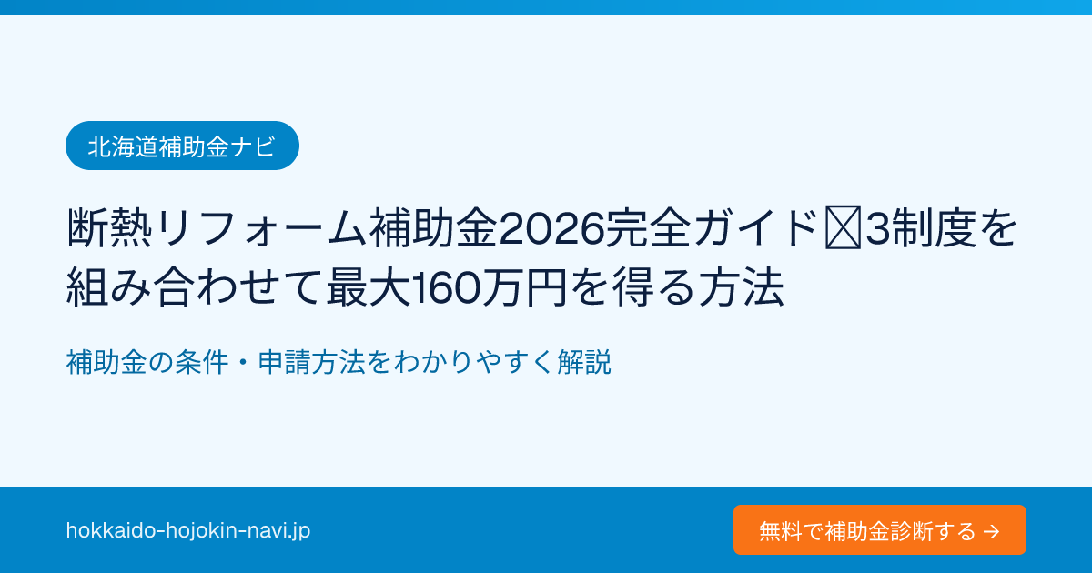 断熱リフォーム補助金2026完全ガイド|3制度を組み合わせて最大160万円を得る方法
