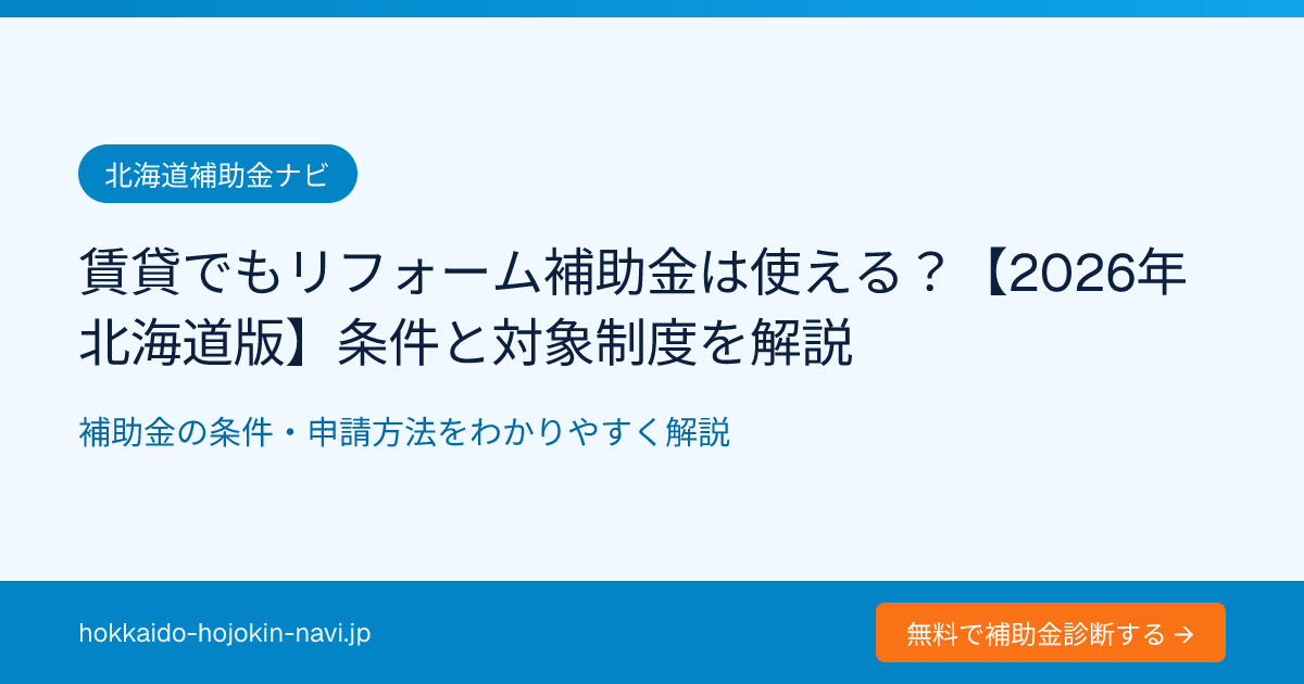 賃貸でもリフォーム補助金は使える?【2026年北海道版】条件と対象制度を解説