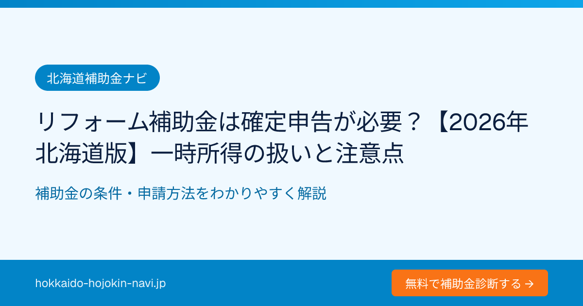 リフォーム補助金は確定申告が必要?【2026年北海道版】一時所得の扱いと注意点