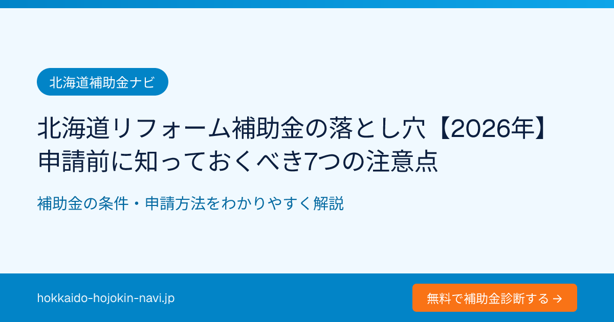 北海道リフォーム補助金の落とし穴【2026年】申請前に知っておくべき7つの注意点
