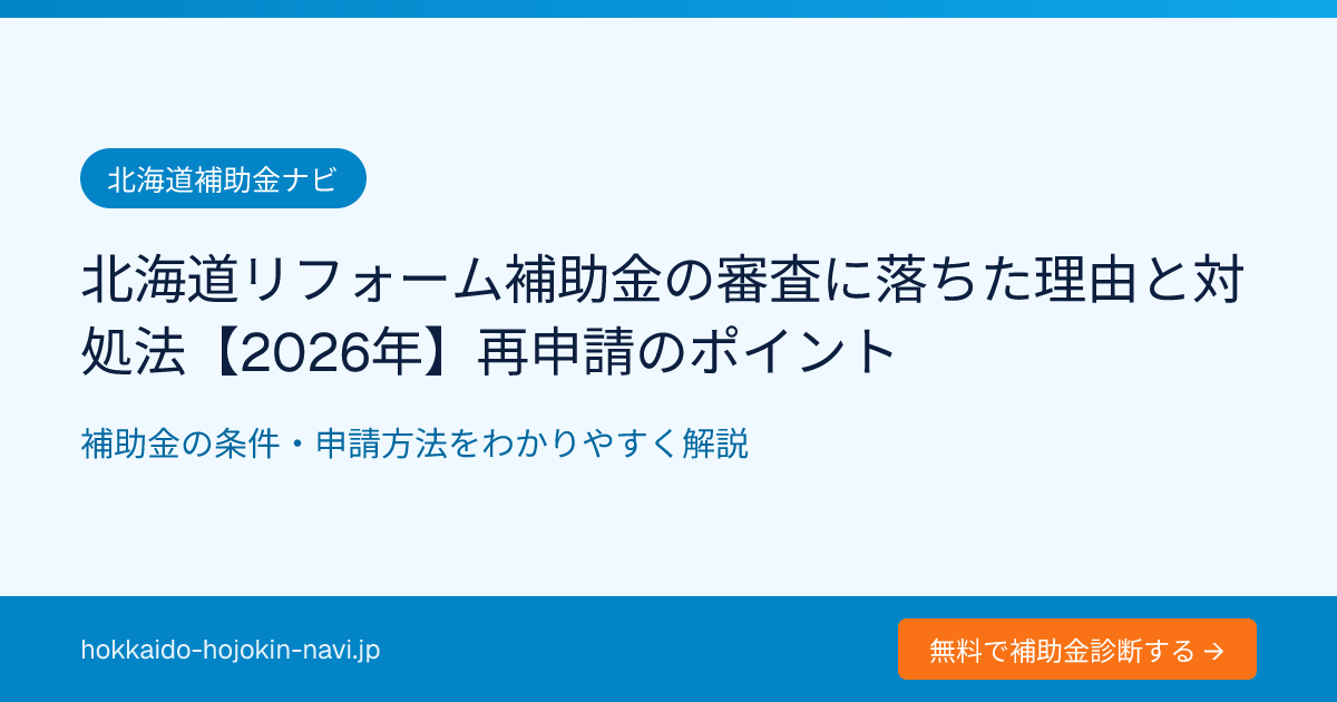 北海道リフォーム補助金の審査に落ちた理由と対処法【2026年】再申請のポイント