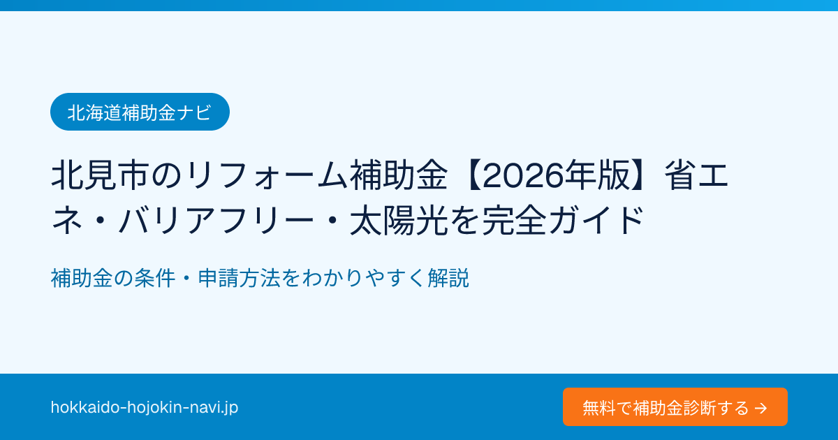 この記事の情報は2026年4月時点のものです。各補助金の受付状況・予算は年度によって変動します。必ず北見市の公式窓口または北海道補助金ナビの最新情報をご確認ください。