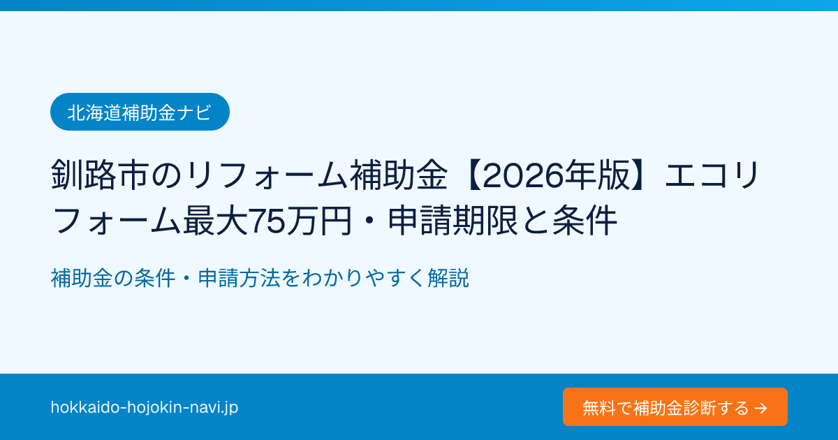 釧路市のリフォーム補助金【2026年版】エコリフォーム最大75万円・申請期限と条件