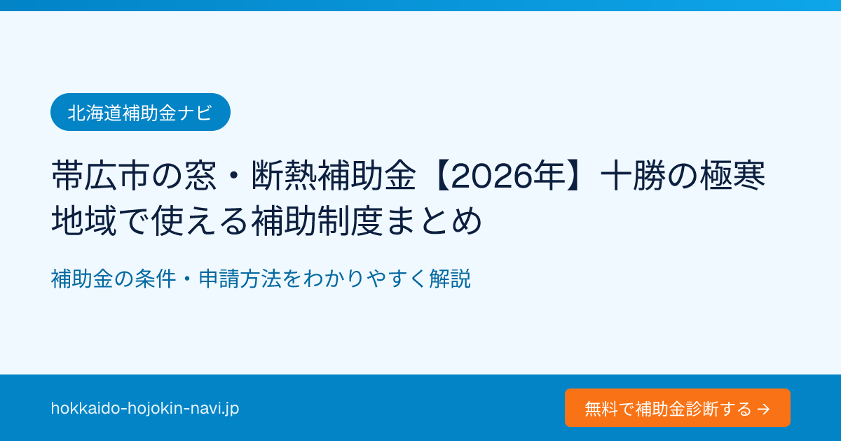 本記事の補助金情報は2026年4月時点の情報をもとに作成しています。補助金の内容・金額・申請期限は年度ごとに変更される場合があります。申請前に必ず各制度の公式サイト・帯広市役所でご確認ください。