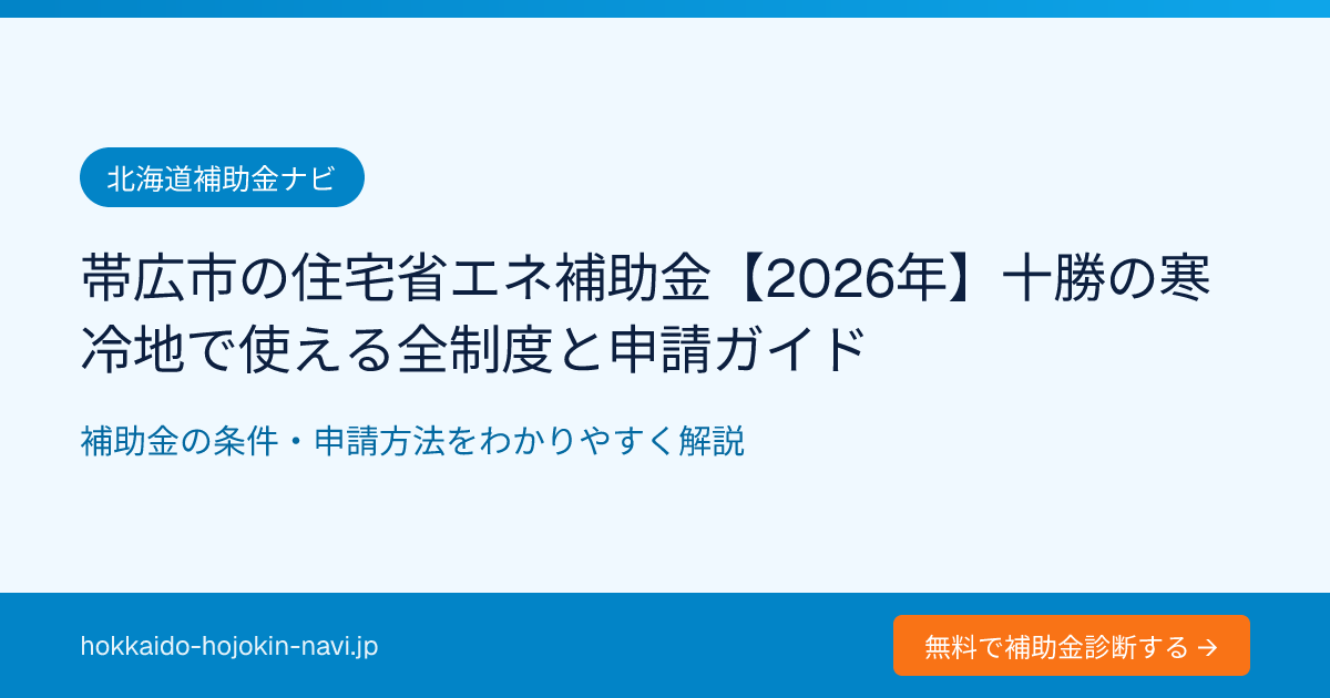 十勝地方の中心都市・帯広市は、冬の最低気温がマイナス20度を超えることもある北海道屈指の寒冷地です。暖房費は年間20〜40万円に達する家庭も珍しくなく、住宅の省エネ化は家計防衛の最優先課題といえます。2026年度は国の補助制度が大幅に拡充され、帯広市独自の支援制度と組み合わせることで、リフォーム費用の大半を補助でカバーできるケースが増えています。本記事では、帯広市で使える住宅省エネ補助金の全制度を体系的に整理し、具体的な申請手順・光熱費削減効果・よくある質問まで徹底的に解説します。