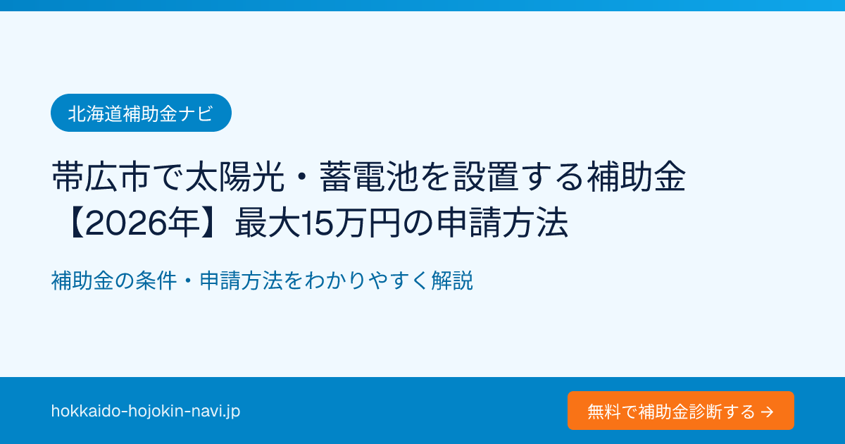 帯広市で太陽光・蓄電池を設置する補助金【2026年】最大15万円の申請方法